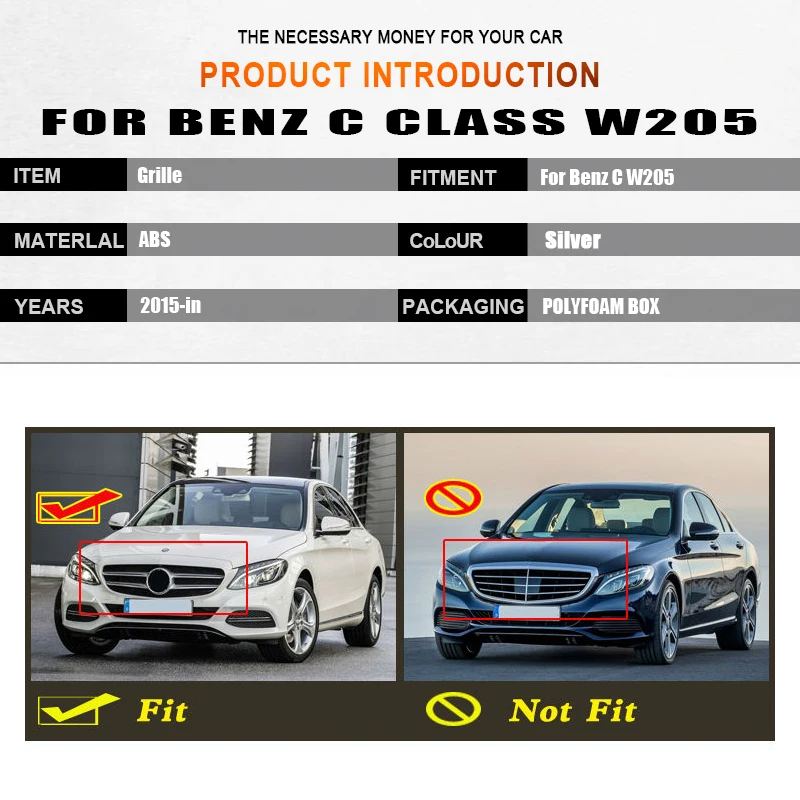 REVIEW TOP SELLER W205 C class GTS style grille grill Sport without Camera ABS silver C180 C200 C250 C300 C350 C63 lo