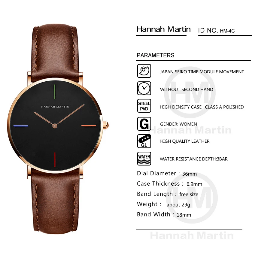 HIGH QUALITY Hannah Martin Women's Watches Quartz Watches Top Brand Luxury Sports Watches Waterproof Female Lady